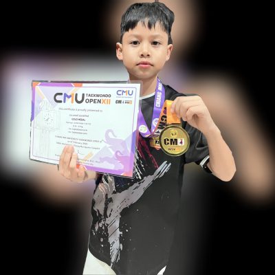เด็กชายนภนต์ รอดพิทักษ์ ชั้นประถมศึกษาปีที่ 1/11 ได้รับรางวัล GOLD MEDAL ประเภทต่อสู้ Kyoruki : Junior- Male 7-8 Y/O : D 24-27 Kg. รายการแข่งขันCMU Taekwondo Open ครั้งที่12