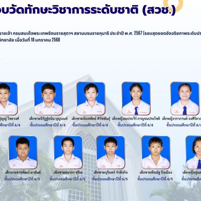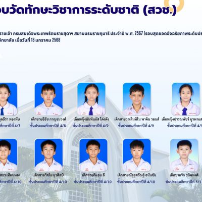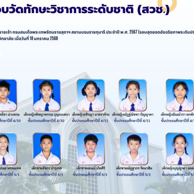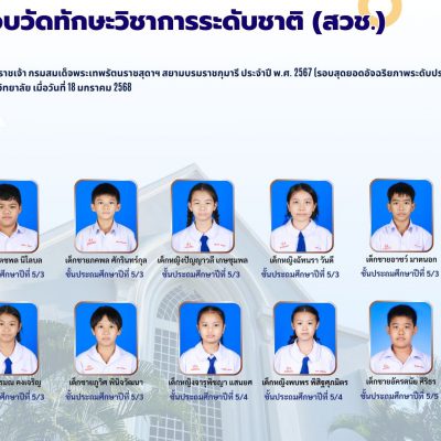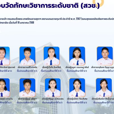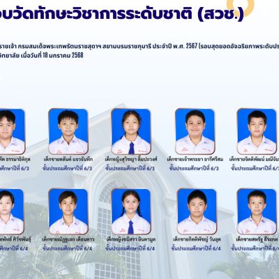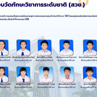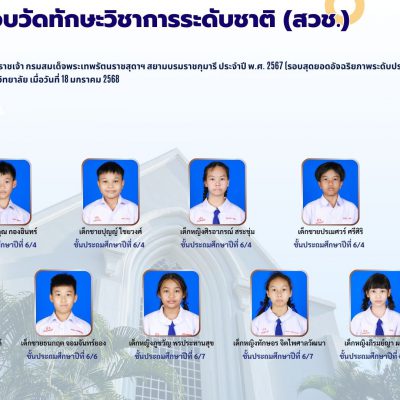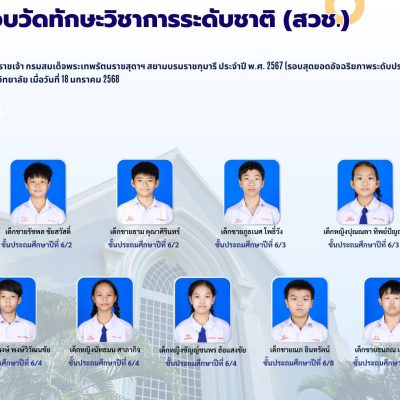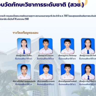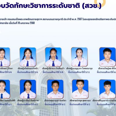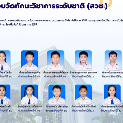 ขอแสดงความยินดีกับนักเรียนชั้นประถมศึกษาปีที่ 4-6 ที่ได้รับรางวัลจากการสอบวัดทักษะวิชาการระดับชาติ (สวช.) ประจำปี พ.ศ. 2567 (รอบสุดยอดอัจฉริยภาพระดับประเทศ) สอบวันที่ 18 มกราคม 2568 ณ สนามสอบโรงเรียนปรินส์รอยแยลส์วิทยาลัย