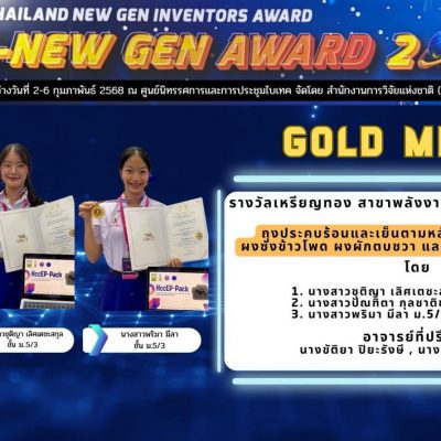 ขอชื่นชมและแสดงความยินดีกับ นักเรียน PRC ที่ได้รับรางวัลเหรียญทอง  จากการประกวดสิ่งประดิษฐ์และนวัตกรรม ในงาน “วันนักประดิษฐ์แห่งชาติ ประจำปี 2568”  เวที Thailand New Gen Inventors Award : I-New Gen Award 2025   วันที่ 2 – 6 กุมภาพันธ์ 2568   ณ ศูนย์นิทรรศการและการประชุมไบเทค บางนา กรุงเทพมหานคร  จัดโดย สำนักงานการวิจัยแห่งชาติ (วช.) กระทรวงการอุดมศึกษา วิทยาศาสตร์ วิจัยและนวัตกรรม (อว.)