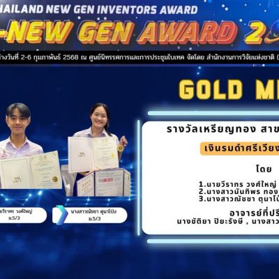 ขอชื่นชมและแสดงความยินดีกับ นักเรียน PRC ที่ได้รับรางวัลเหรียญทอง  จากการประกวดสิ่งประดิษฐ์และนวัตกรรม ในงาน “วันนักประดิษฐ์แห่งชาติ ประจำปี 2568”  เวที Thailand New Gen Inventors Award : I-New Gen Award 2025   วันที่ 2 – 6 กุมภาพันธ์ 2568   ณ ศูนย์นิทรรศการและการประชุมไบเทค บางนา กรุงเทพมหานคร  จัดโดย สำนักงานการวิจัยแห่งชาติ (วช.) กระทรวงการอุดมศึกษา วิทยาศาสตร์ วิจัยและนวัตกรรม (อว.)