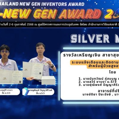 ขอชื่นชมและแสดงความยินดีกับ นักเรียน PRC ที่ได้รับรางวัลเหรียญเงิน จากการประกวดสิ่งประดิษฐ์และนวัตกรรม ในงาน “วันนักประดิษฐ์แห่งชาติ ประจำปี 2568” เวที Thailand New Gen Inventors Award : I-New Gen Award 2025 วันที่ 2 – 6 กุมภาพันธ์ 2568 ณ ศูนย์นิทรรศการและการประชุมไบเทค บางนา กรุงเทพมหานคร จัดโดย สำนักงานการวิจัยแห่งชาติ (วช.) กระทรวงการอุดมศึกษา วิทยาศาสตร์ วิจัยและนวัตกรรม (อว.)