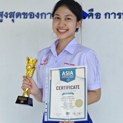 ขอชื่นชมและแสดงความยินดีกับ นางสาวภูษณิศา คงเหลือ ชั้นมัธยมศึกษาปีที่ 6/7 ที่ได้รับรางวัล CHAMPION รูปแบบออนไลน์ จากรายการ ASIA STUDENTS ARTS FESTIVAL 2025 ประเภท POP SINGING รุ่นอายุ 16-17 ปี จัดโดย MUSICBAKERYSCHOOL เมื่อวันที่ 31 ธันวาคม 2547 (ระดับนานาชาติ) : รับถ้วยรางวัล วันที่ 8 เมษายน 2568