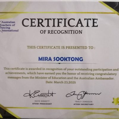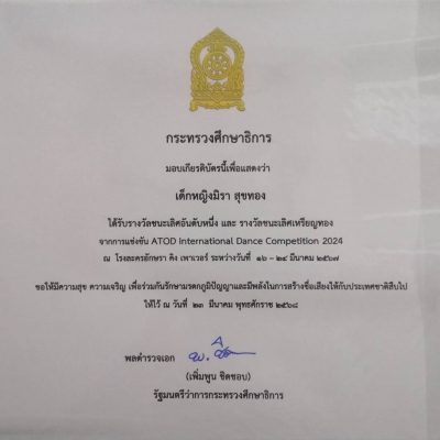 เด็กหญิงมิรา สุขทอง ชั้นประถมศึกษาปีที่ 2/4 ได้รับรางวัล 3 เหรียญทอง จากการเเข่งขันATOD 2025 International Dance Competition ณ โรงละครอักษรา King Power