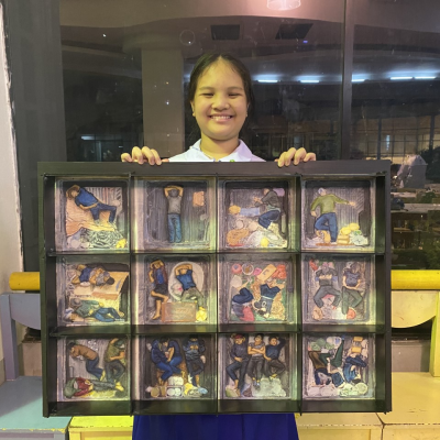 ขอแสดงความยินดีกับ เด็กหญิงไอย์รีน จันทรรัตน์ นักเรียนชั้นมัธยมศึกษาปีที่ 1 ได้รับรางวัลชนะเลิศศิลปกรรมอันดับที่ 3 ระดับอายุ 9-12ปี พร้อมรับเงินรางวัล 6,000บาท โล่และเกียรติบัตรระดับประเทศ รวมถึงร่วมแสดงผลงานนิทรรศการณ พิพิธภัณฑสถานแห่งชาติ หอศิลป์ กทม. ในเดือน กรกฎาคม 2565