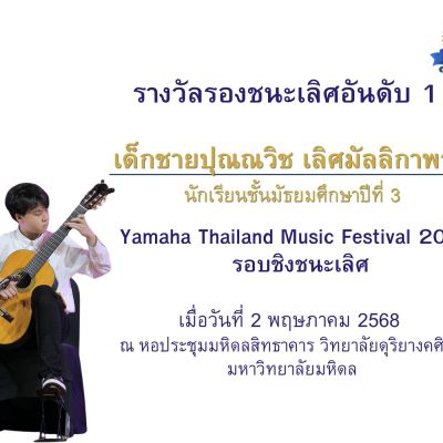 ในการประกวด Yamaha Thailand Music Festival 2025 รอบชิงชนะเลิศระดับประเทศ เมื่อวันที่ 2 พฤษภาคม 2568 ณ หอประชุมมหิดลสิทธาคาร มหาวิทยาลัยมหิดล ศาลายา จังหวัดนครปฐม