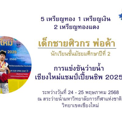 จากการแข่งขันว่ายน้ำเชียงใหม่แชมป์เปี้ยนชิพ 2025 ณ สระว่ายน้ำมหาวิทยาลัยการกีฬาแห่งชาติ วิทยาเขตเชียงใหม่ จ.เชียงใหม่ ระหว่างวันที่ 24-25 พฤษภาคม 2568 จัดโดย cnx swimming