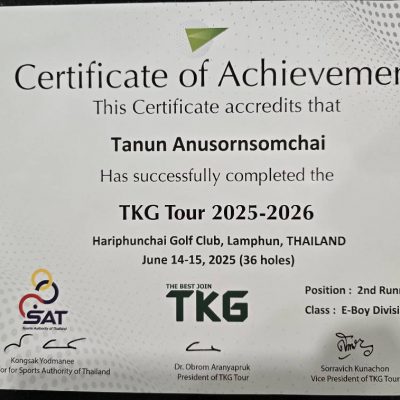 ขอชื่นชมและร่วมแสดงความยินดีกับเด็กชายธนัน อนุสรณ์สมชาย ชั้นประถมศึกษาปีที่ 2/1 ได้รับรางวัล 2nd Runner Up Class:E-Boy Division ll จากการแข่งขัน TKG Tour 2025-2026 จัดโดย บริษัท ทีเคจี สปอร์ตส์ โฮลดิ้งส์ TKG (Thailand Kids Golf) Tour ณ Hariphunchai Golf club,Lamphun,Thailand ระหว่างวันที่ 14-15 มิถุนายน 2568