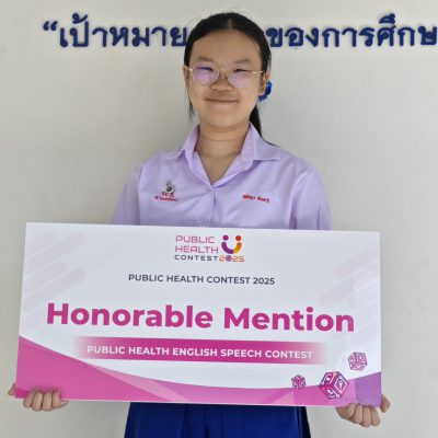 ขอชื่นชมและแสดงความยินดีกับ นางสาวสุพิชญา พิมสารี ชั้นมัธยมศึกษาปีที่ 4/1 ที่ได้รับรางวัล Honorable Mention : Public Health Speech Contest จากการแข่งขันวิชาการสาธารณสุข (Public Health Contest 2025) ระดับมัธยมศึกษาตอนปลาย ชิงถ้วยพระราชทานพระเจ้าวรวงศ์เธอ พระองค์เจ้าอทิตยาทรกิติคุณ ห้วข้อ “Public Health Speech Contest” จัดโดย สำนักวิชาสาธารณสุขศาสตร์ มหาวิทยาลัยวลัยลักษณ์ ณ มหาวิทยาลัยวลัยลักษณ์ เมื่อวันที่ 20 มิถุนายน 2568 (ระดับประเทศ)