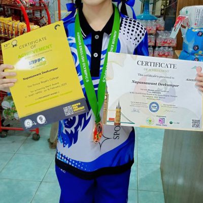 ขอชื่นชมและรว่มแสดงความยินดีกับ เด็กหญิงนภัสวรรน ดีคำป้อ ชั้นประถมศึกษาปีที่ 2/4 ได้รับรางวัล merit award จากการแข่งขันรายการ 13th Hippo English without Borders The Contest ระดับประเทศ ณ โรงเรียนนานาชาติสาธิตรังสิต (SBS) เมื่อวันที่ 16 กุมภาพันธ์ 2568