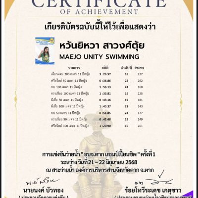 จากการแข่งขันว่ายน้ำ อบจ.ตาก แชมป์เปี้ยนชิพ