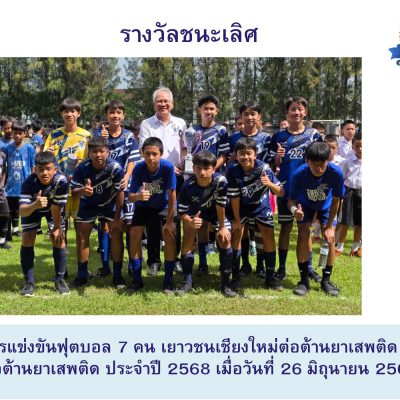 ขอชื่นชมและแสดงความยินดีกับ นักกีฬาฟุตบอล ทีมมัธยมศึกษาตอนต้น โรงเรียนปรินส์รอยแยลส์วิทยาลัย ได้รับรางวัลชนะเลิศ การแข่งขันฟุตบอล 7 คน เยาวชนเชียงใหม่ต่อต้านยาเสพติด วันต่อต้านยาเสพติด ประจำปี 2568 เมื่อวันที่ 26 มิถุนายน 2568 ณ วิทยาลัยโปลิเทคนิคล้านนา