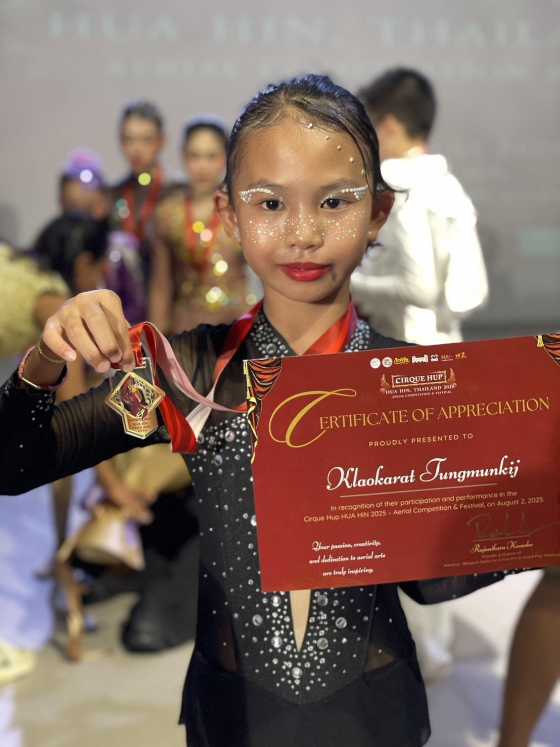 เด็กหญิงเกล้ากะรัต ตั้งหมั่นกิจ รางวัลชนะเลิศ จากรายการ Aerial Hammock Professional ระดับ นานาชาติ