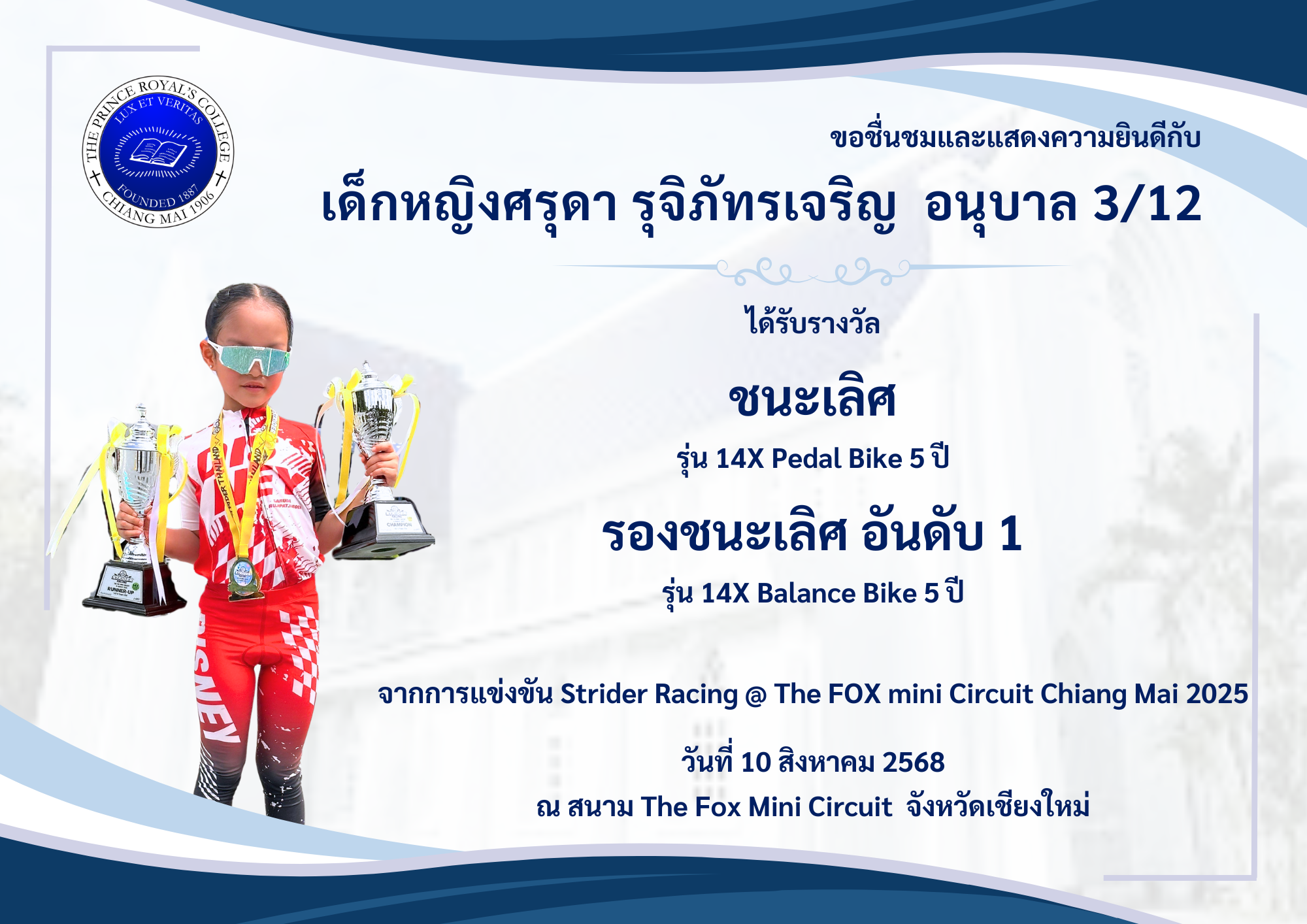 เมื่อวันที่ 10 สิงหาคม 2568 ณ สนาม The Fox Mini Circuit จังหวัดเชียงใหม่