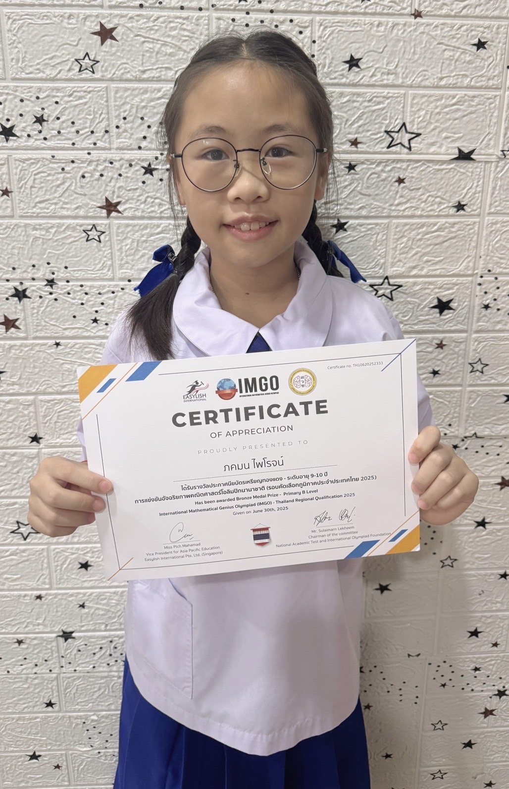 เด็กหญิงภคมน ไพโรจน์ ชั้น นักเรียนชั้นประถมศึกษาปีที่ 4