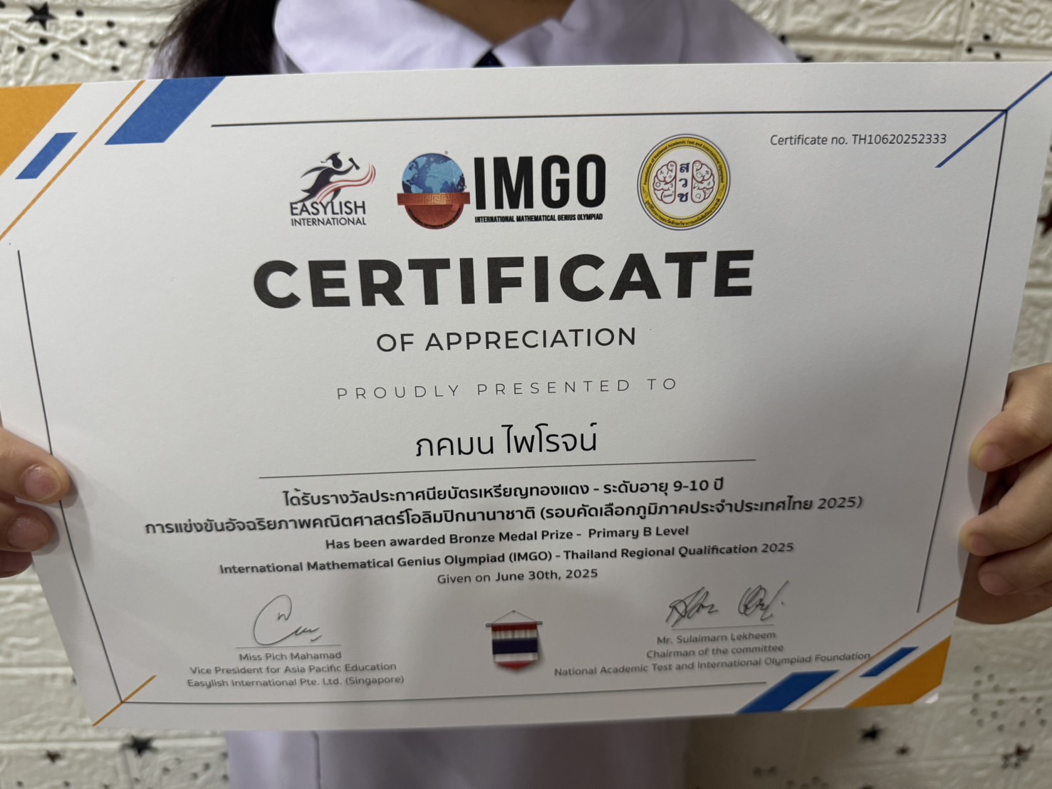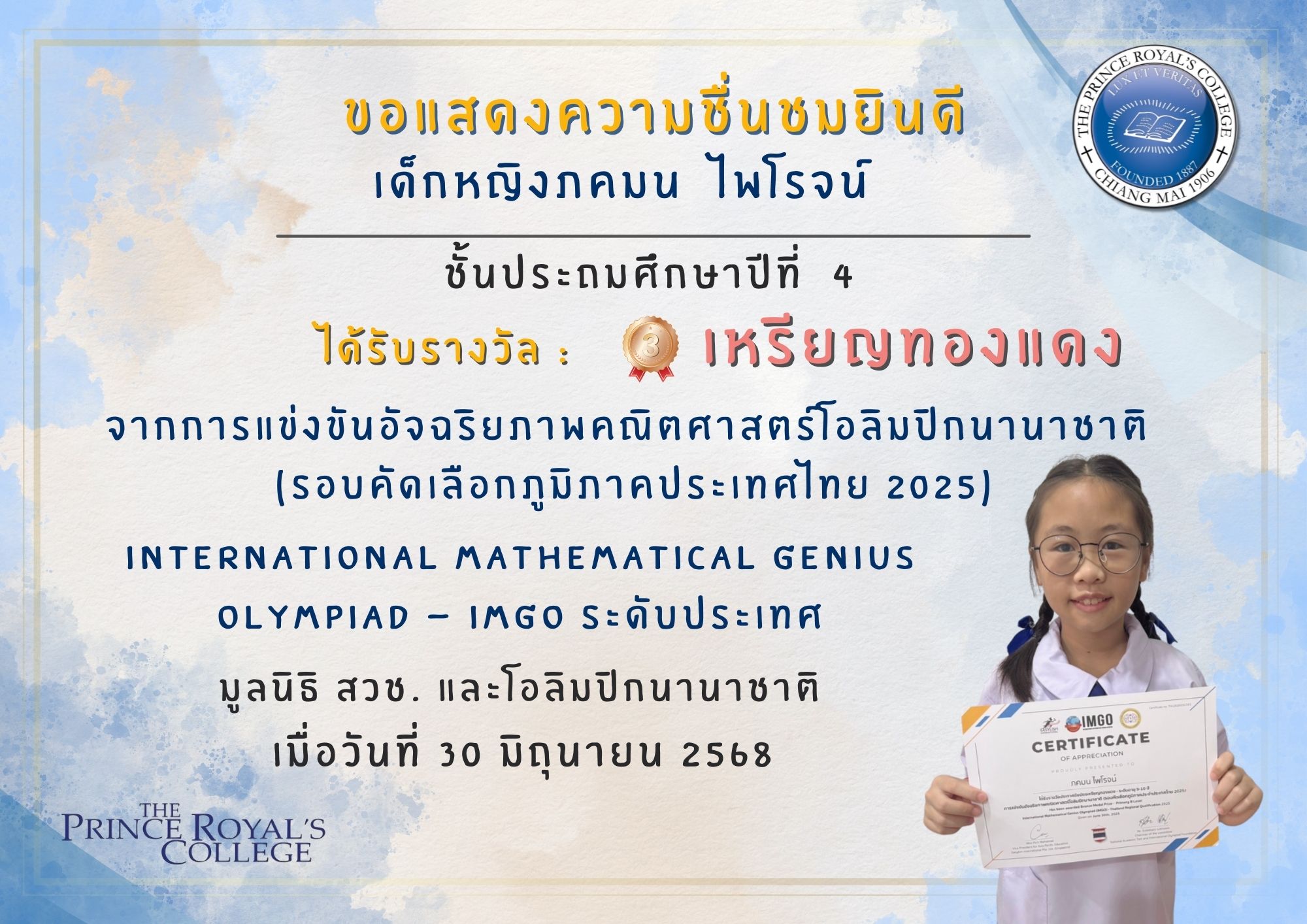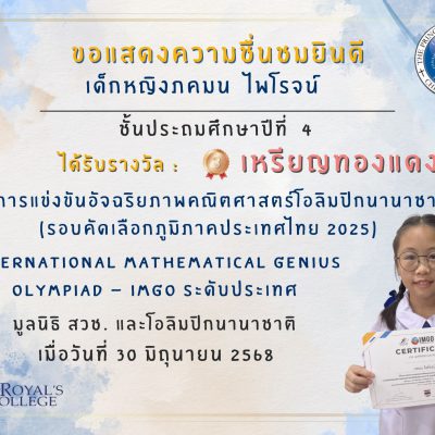การแข่งขัน : จากการแข่งขันอัจฉริยภาพคณิตศาสตร์โอลิมปิกนานาชาติ (รอบคัดเลือกภูมิภาคประเทศไทย 2025)
