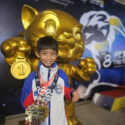 ชนะเลิศอันดับ1 หรียญทองแข่งท่ารำพุ่มเซ่เดี่ยวชาย สายน้ำตาล รุ่นอายุไม่เกิน 9 ปี