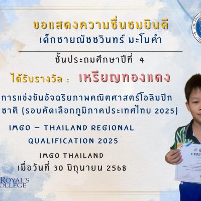 ที่ได้รับรางวัล : เหรียญทองแดง วิชาคณิตศาสตร์
