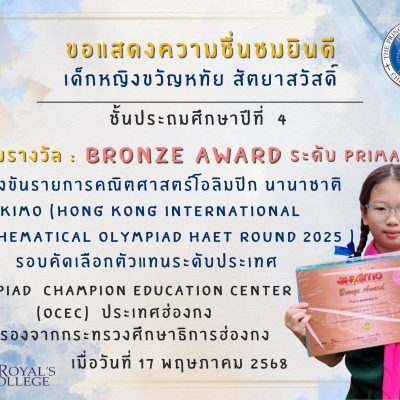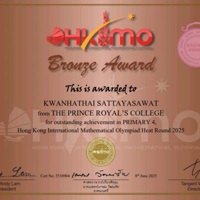 การแข่งขัน : การแข่งขันรายการคณิตศาสตร์โอลิมปิก นานาชาติ HKIMO (Hong Kong International Mathematical Olympiad HAET ROUND 2025 ) รอบคัดเลือกตัวแทนระดับประเทศ