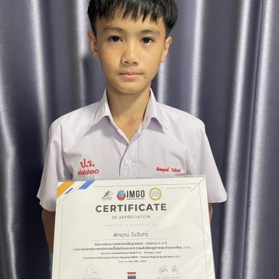 ขอแสดงความชื่นชมยินดีกับ เด็กชายพิทยุตม์ วันจันทร์ ระดับชั้นประถมศึกษาปีที่ 6