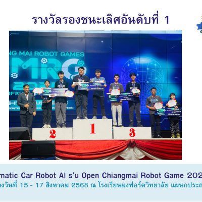 ขอชื่นชมและร่วมแสดงความยินดีกับ ทีมโรงเรียนปรินส์รอยแยลส์วิทยาลัย รางวัลรองชนะเลิศอันดับที่ 1 รายการ Automatic Car Robot Al s’u Open Chiangmai Robot Game 2025 ระหว่างวันที่ 15 – 17 สิงหาคม 2568 ณ โรงเรียนมงฟอร์ตวิทยาลัย แผนกประถม โดยมีสมาชิกในทีม ดังนี้