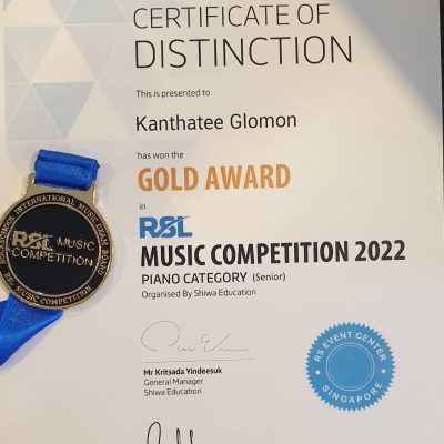 ขอแสดงความยินดีกับ เด็กชายกันตธี กลมอ่อน นักเรียนชั้นมัธยมศึกษาปีที่ 3 ได้รับรางวัล Gold Award (Distinction) รายการแข่งขัน RSL Music Competition 2022 (Piano, Senior category) จัดโดย Rock School Thailand ร่วมกับ RSL London สถานที่แข่งขัน แข่งขันออนไลน์ และ แข่งขัน onsite ที่วิทยาลัยการดนตรี มหาวิทยาลัยราชภัฏบ้านสมเด็จเจ้าพระยา
