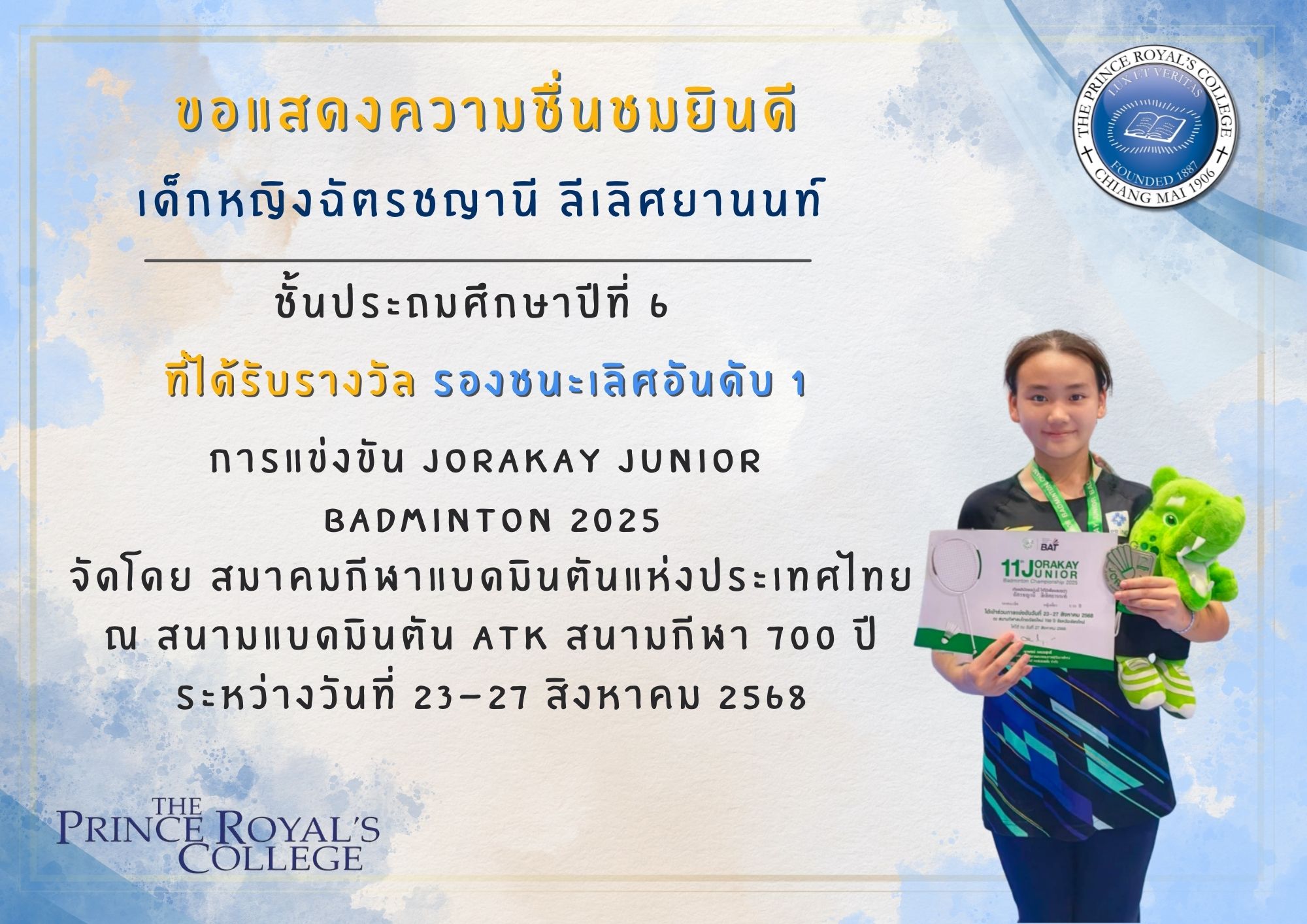 รองชนะเลิศอันดับ 1 หญิงเดี่ยว รุ่นอายุไม่เกิน 13 ปี