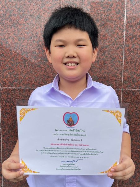 เด็กชายเอวิน สมิตินันทน์ ลี ได้รับใบประกาศเชิดชูเกียรติ ต้นแบบคนดีศรีเชียงใหม่ ประจำปี 2568