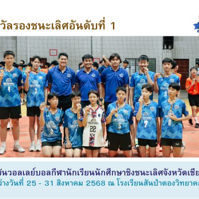 ขอชื่นชมและแสดงความยินดีกับ ทีมวอลเลย์บอลโรงเรียนปรินส์รอยแยลส์วิทยาลัย ได้รับรางวัลรองชนะเลิศอันดับที่ 1 รุ่น 16 ปี ชาย การแข่งขันวอลเลย์บอลกีฬานักเรียนนักศึกษาชิงชนะเลิศจังหวัดเชียงใหม่ ระหว่างวันที่ 25-31 สิงหาคม 2568 ณ โรงเรียนสันป่าตองวิทยาคม