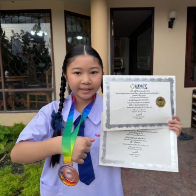 เด็กหญิงกัญญ์ณพัชร ชุติพงษ์วิเวท นักเรียนระดับชั้นประถมศึกษาปีที่ 5 รางวัลเหรียญทองแดง วิชาคณิตศาสตร์ และ รางวัลชมเชย  วิชาวิทยาศาสตร์ จากโครงการทดสอบความสามารถทางวิชาการชิงชนะเลิศแห่งประเทศไทยระดับประถมศึกษา ครั้งที่ 4 และมัธยมศึกษา ครั้งที่ 1 ( uxact genius star 4)