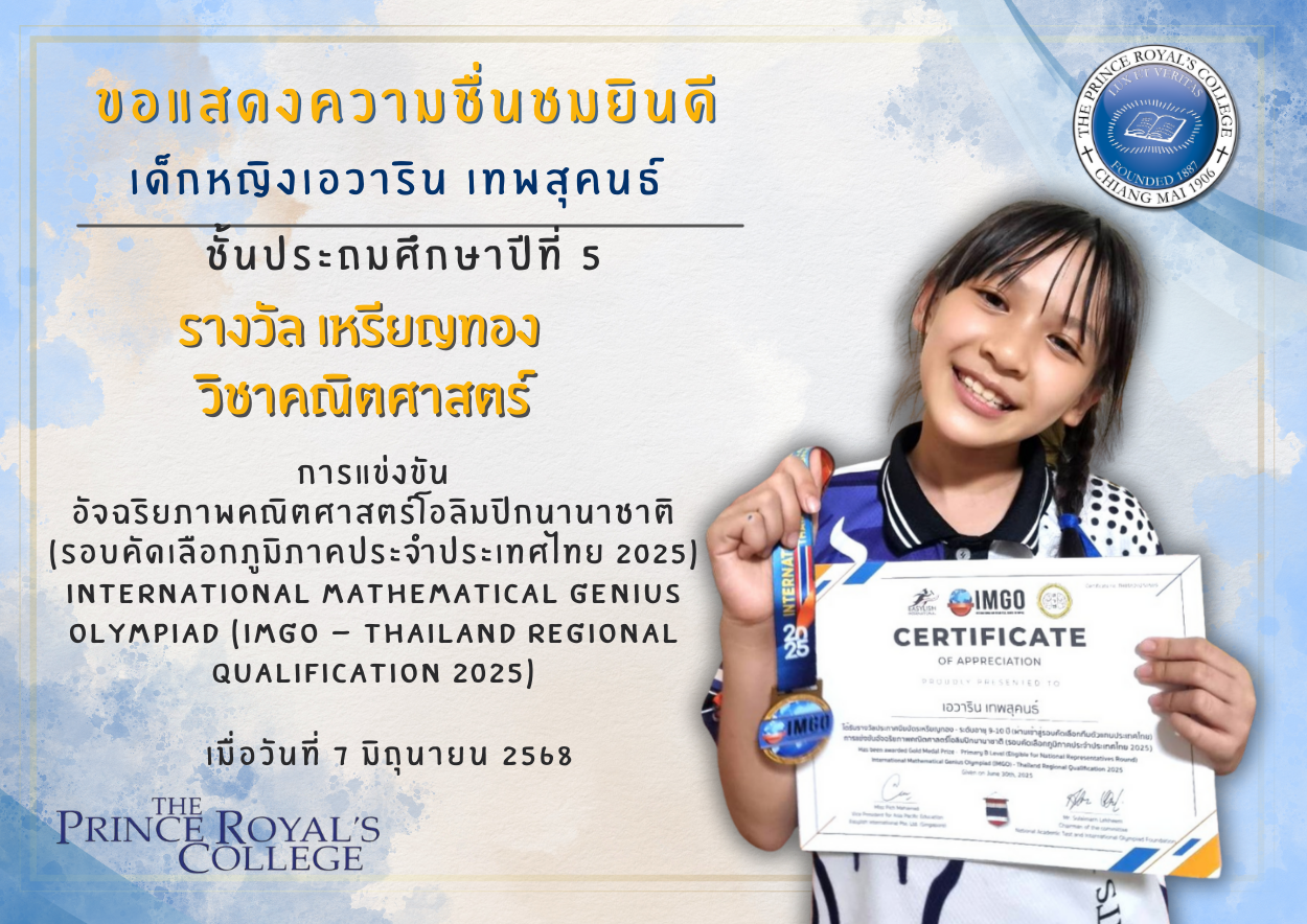 จากการแข่งขันอัจฉริยภาพคณิตศาสตร์โอลิมปิกนานาชาติ(รอบคัดเลือกภูมิภาคประจำประเทศไทย 2025)