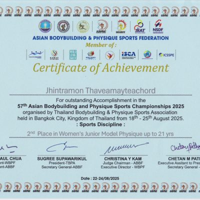 - รางวัลที่ 2 Women’s Junior Model Physique
