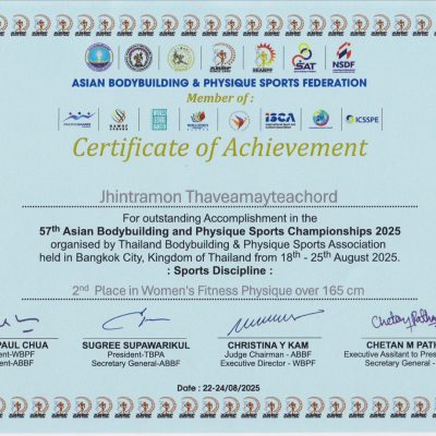 - รางวัลที่ 2 Women’s Junior Fitness over 165 cm
