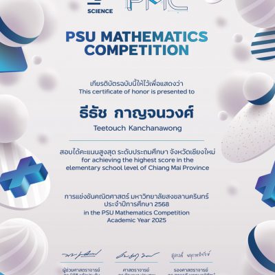 จากการแข่งขันคณิตศาสตร์ มหาวิทยาลัยสงขลานครินทร์ ประจำปีการศึกษา 2568 in the PSU Mathematics Competition Academic Year 2025(PMC)