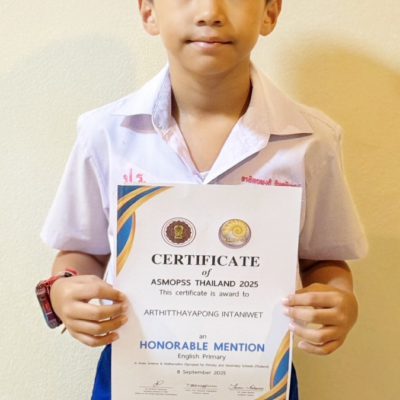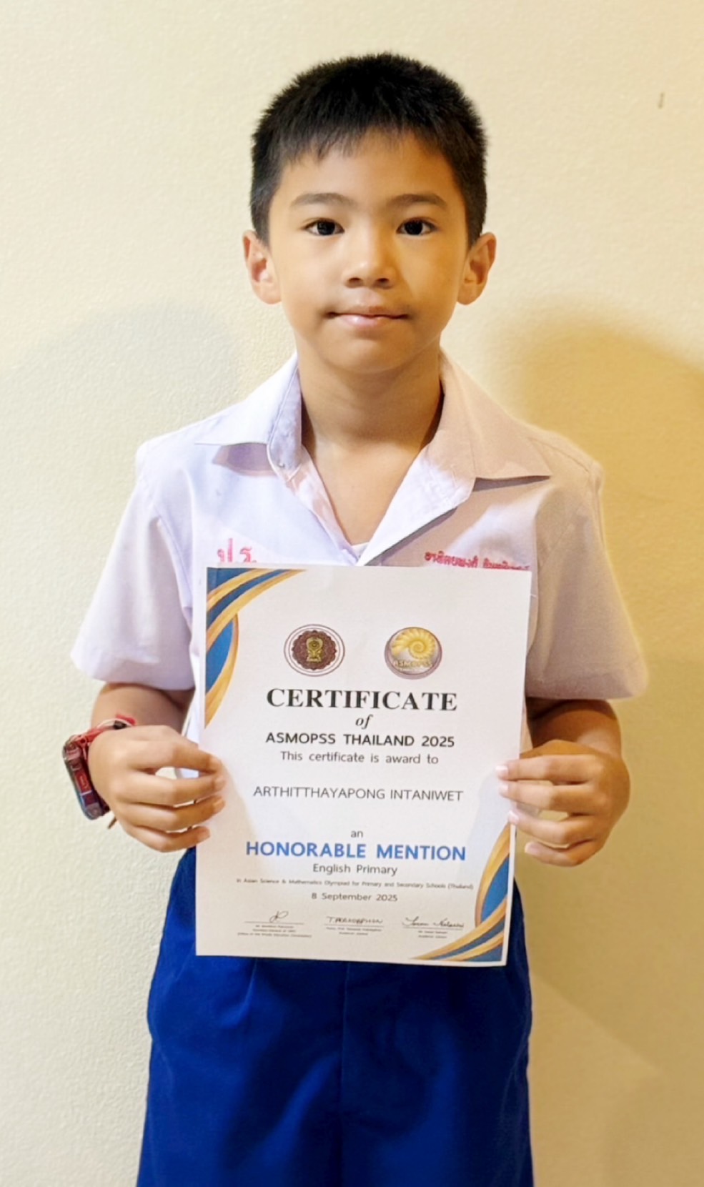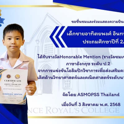 ได้รับรางวัลHonorable Mention (รางวัลชมเชย) วิชาภาษาอังกฤษ ระดับ ป.2