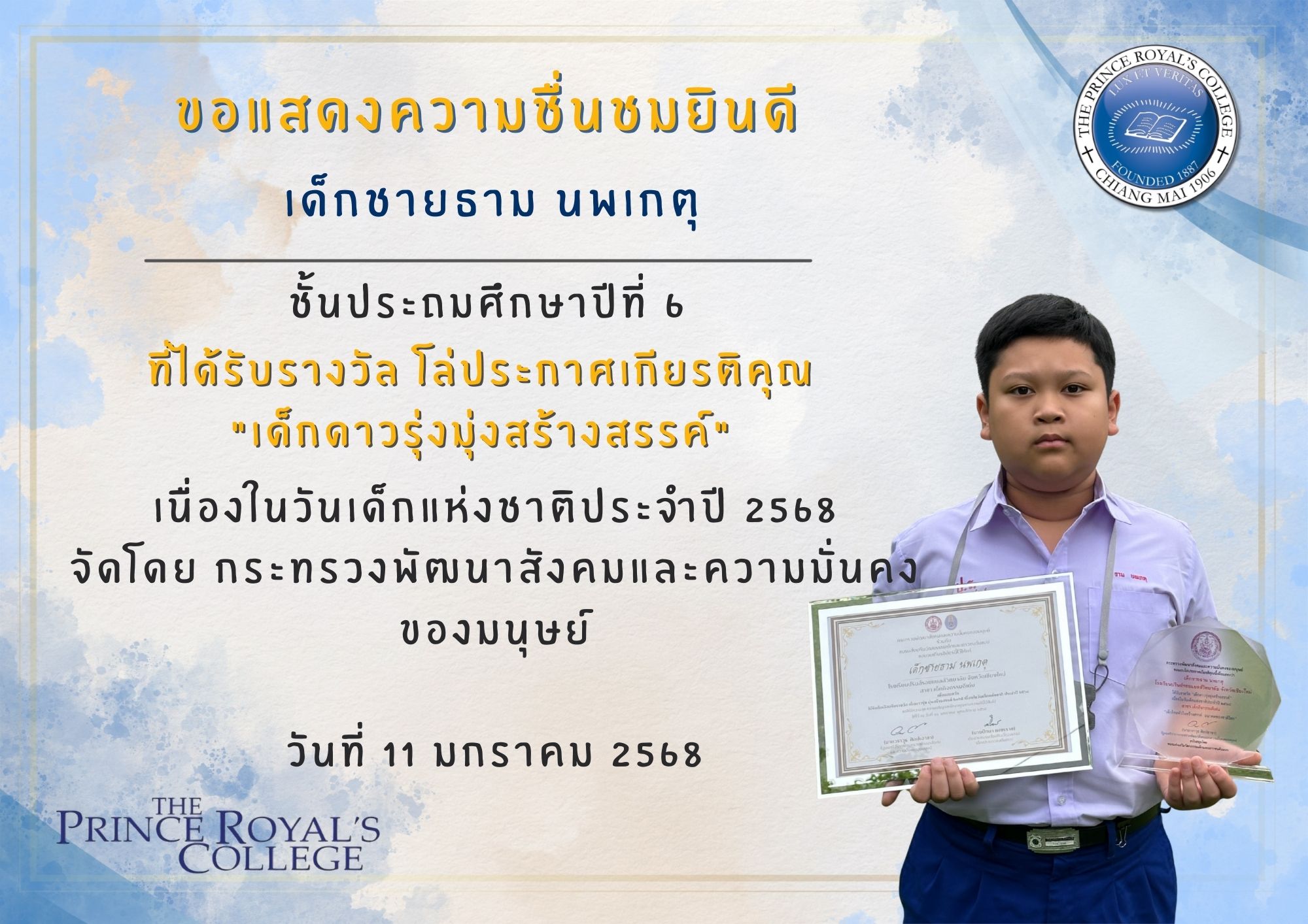 ขอแสดงความชื่นชมยินดีกับ เด็กชายธาม นพเกตุ นักเรียนชั้นประถมศึกษาปีที่ 6