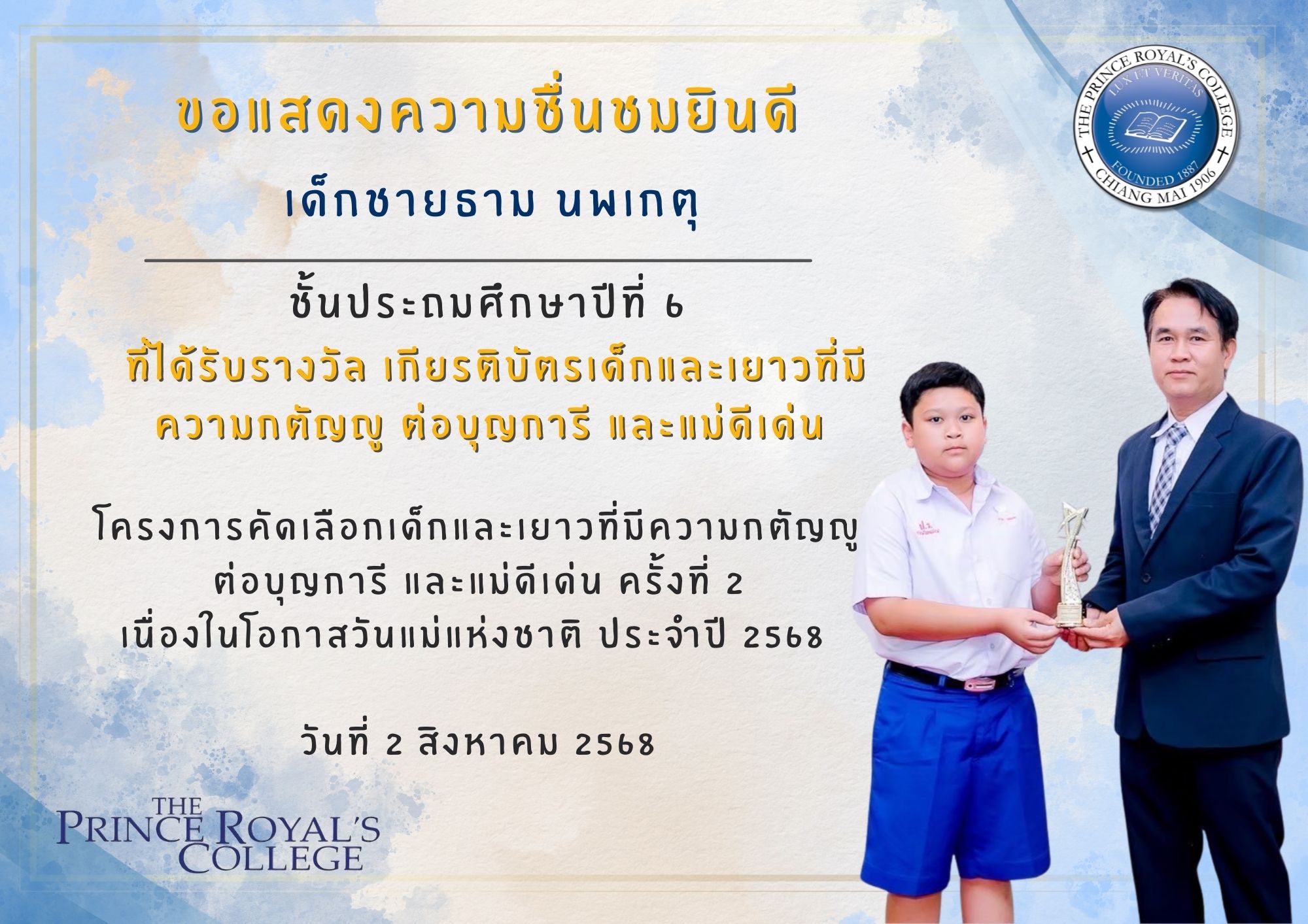 และดำรงตนอยู่ในศีลธรรมและเชิดชูวงศ์ตระกูล สมควรได้รับการเช็ดซูเกียรติในฐานะ “ลูกดีเด่น” ประจำปี 2568