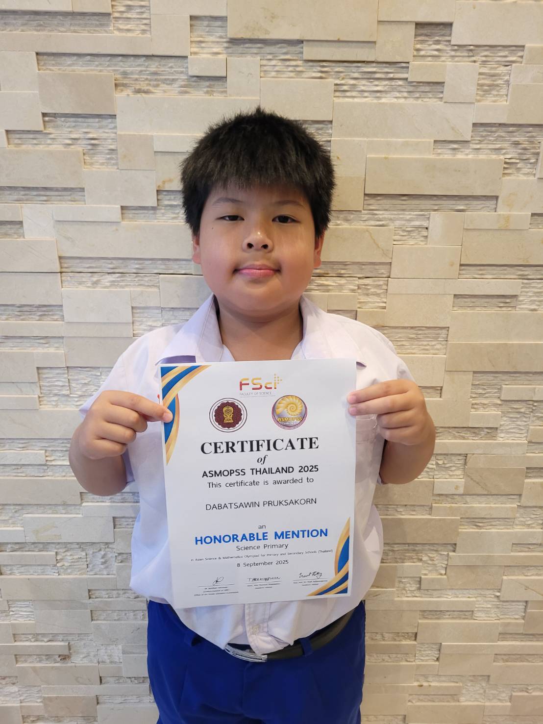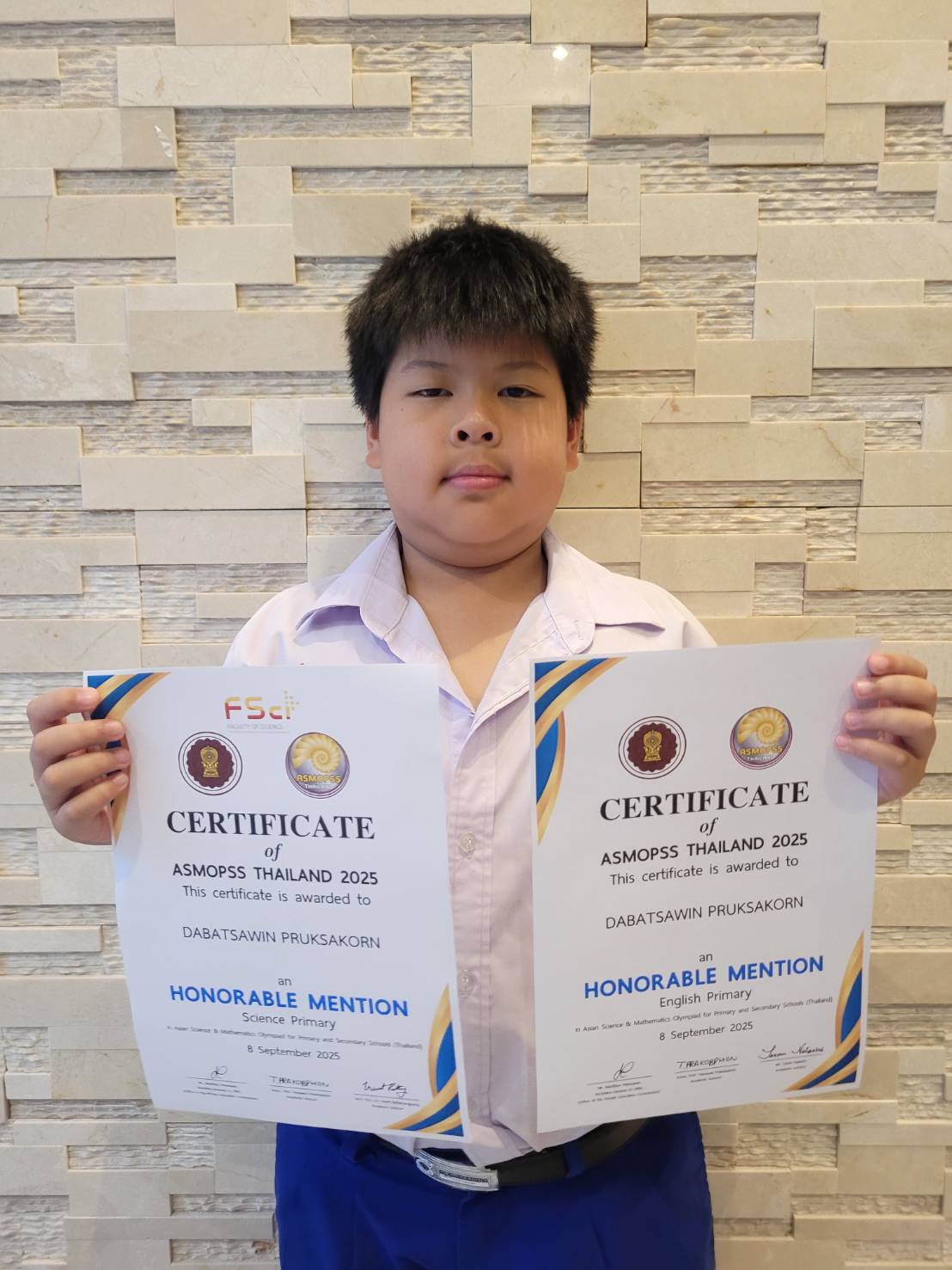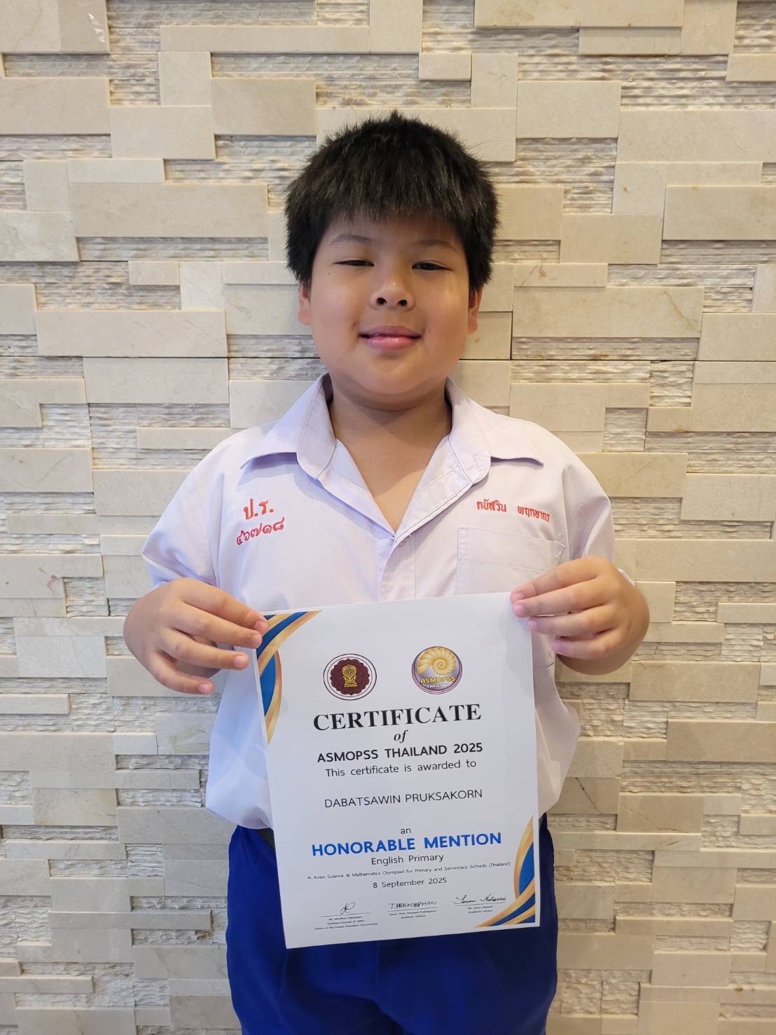 ขอแสดงความชื่นชมและร่วมยินดีกับเด็กชายดบัสวิน พฤกษากร นักเรียนชั้นประถมศึกษาปีที่ 3/5