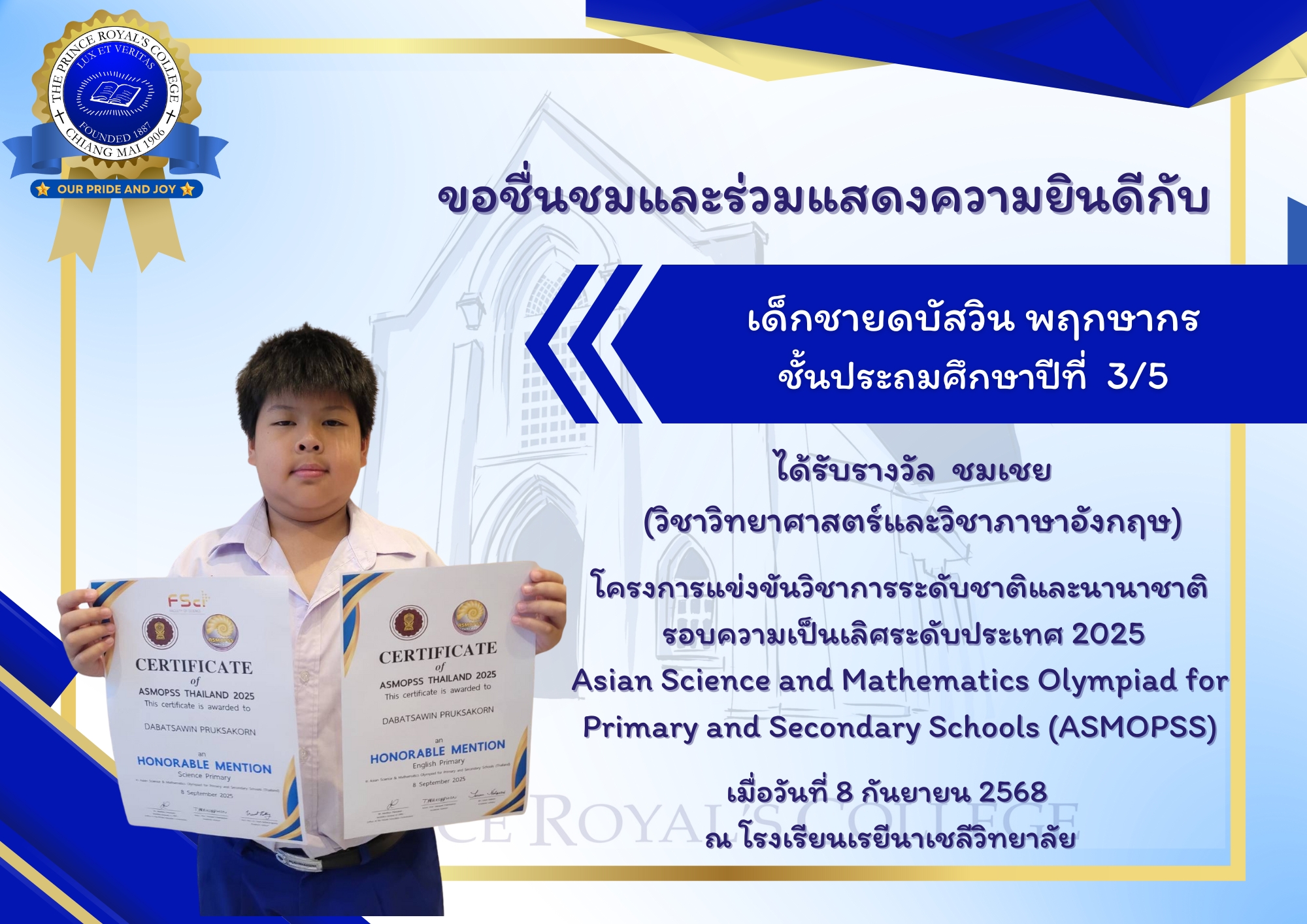 จากการแข่งขัน Asian Science and Mathematics Olympiad for Primary and Secondary Schools หรือ ASMOPSS