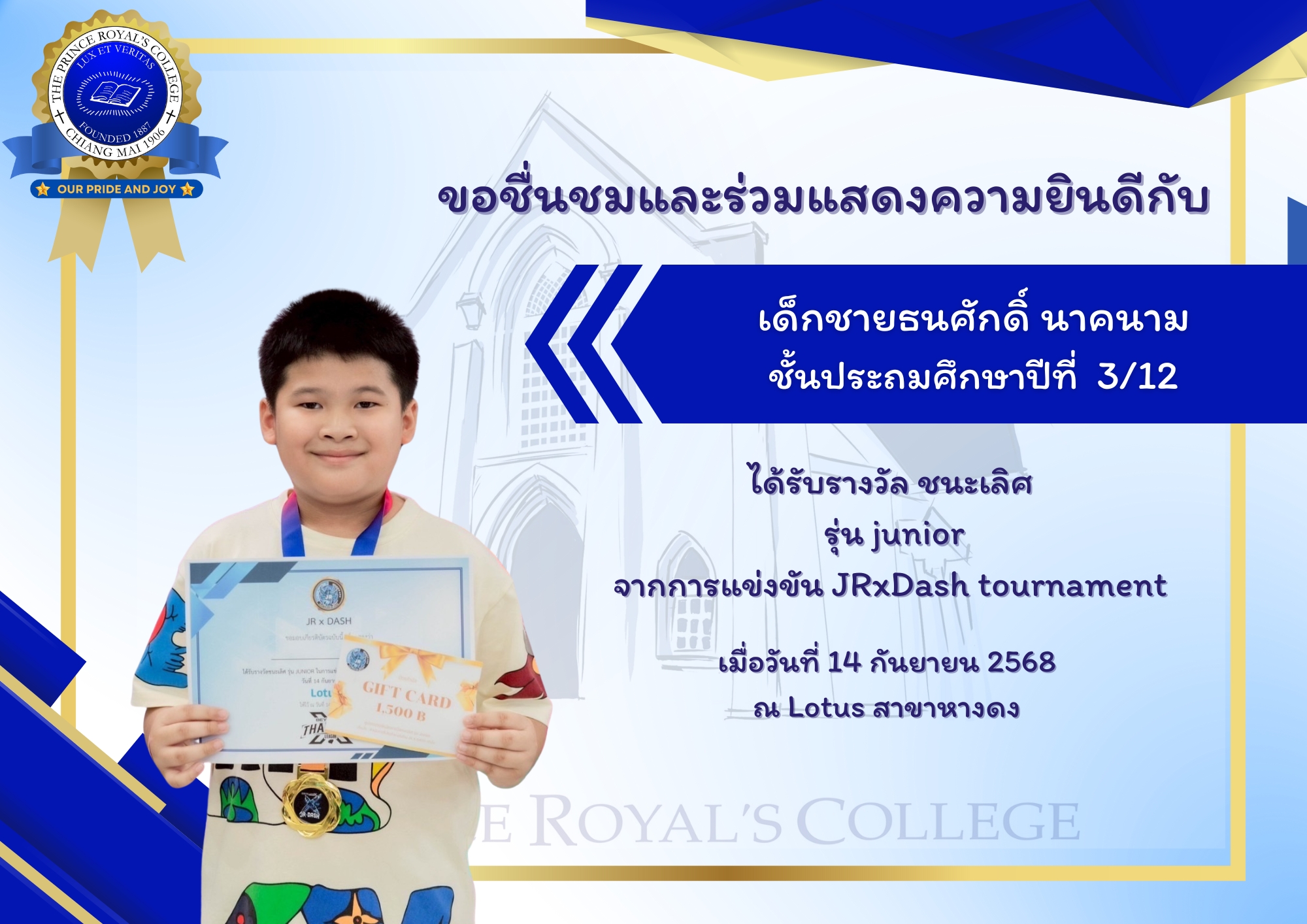 ขอแสดงความชื่นชมและร่วมยินดีกับเด็กชายธนศักดิ์ นาคนาม นักเรียนชั้นประถมศึกษาปีที่ 3/12