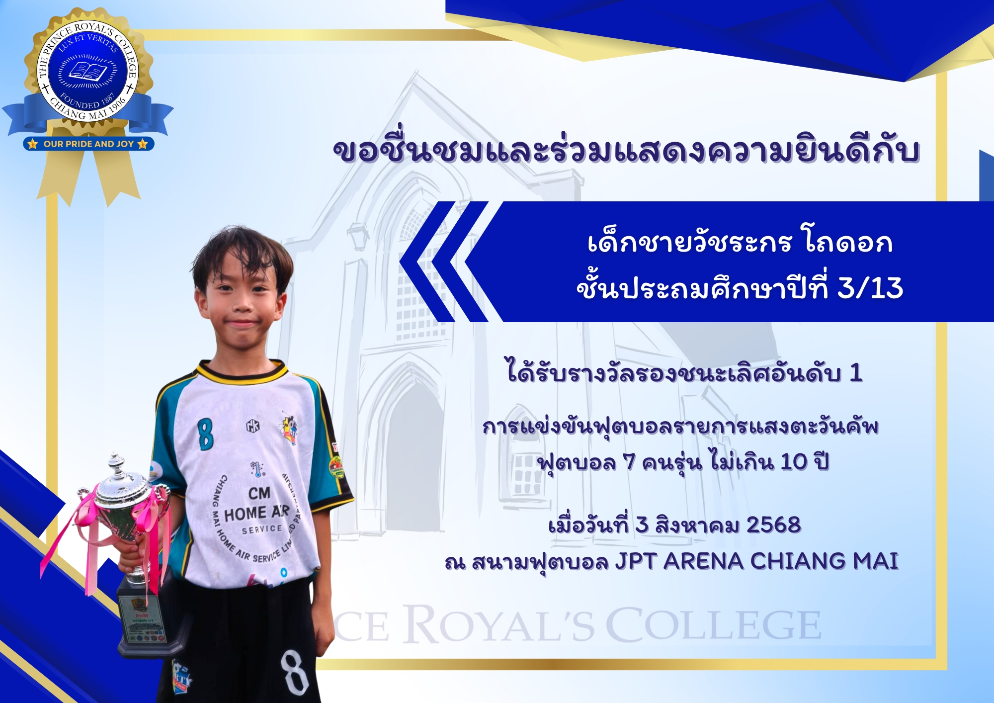 ขอแสดงความชื่นชมและร่วมยินดีกับเด็กชายวัชระกะ โถดอก นักเรียนชั้นประถมศึกษาปีที่ 3/13