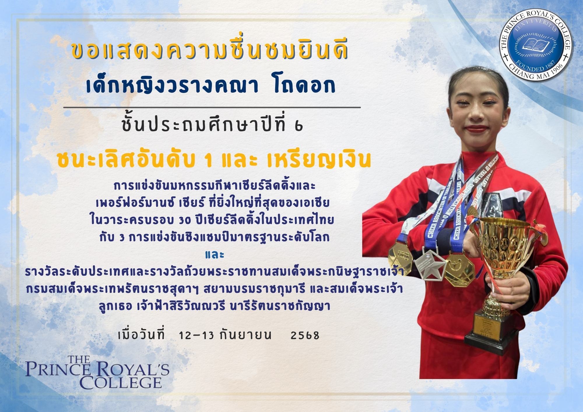 จากการแข่งขันมหกรรมกีฬาเชียร์ลีดดิ้งและเพอร์ฟอร์มานซ์ เชียร์ ที่ยิ่งใหญ่ที่สุดของเอเชีย