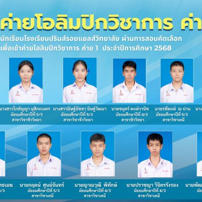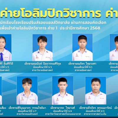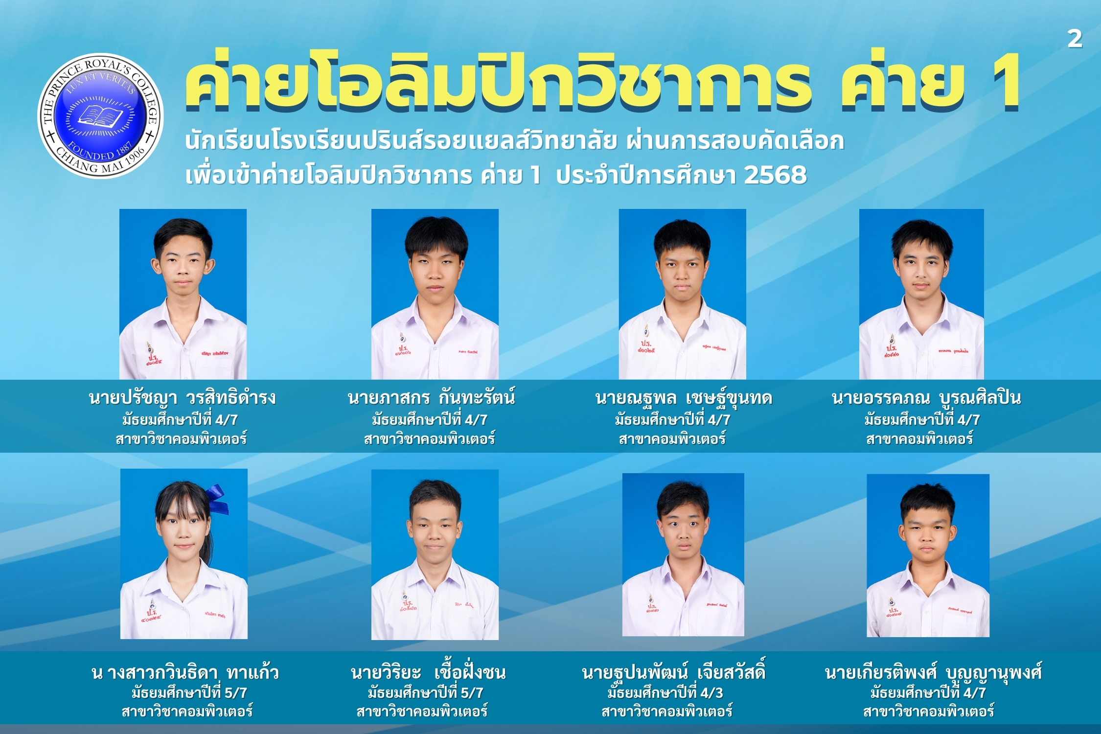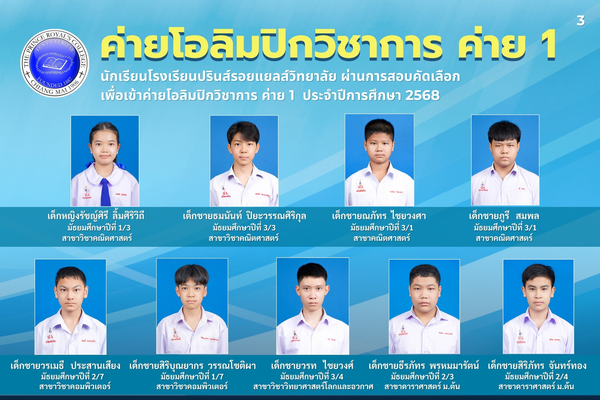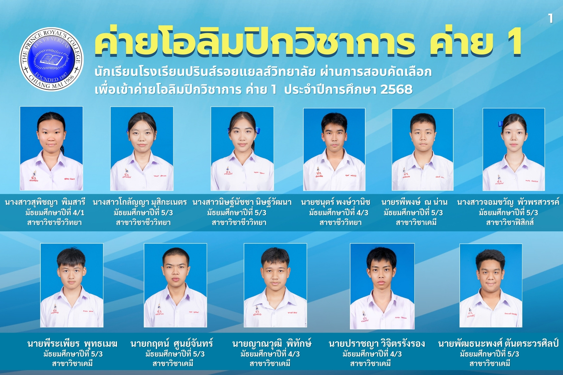 ขอชื่นชมและแสดงความยินดีกับ นักเรียน PRC ที่ผ่านการคัดเลือกเพื่อเข้าค่ายโอลิมปิกวิชาการ ค่าย 1 ประจำปีการศึกษา 2568 จัดสอบโดย ศูนย์ สอวน. คณะวิทยาศาสตร์ มหาวิทยาลัยเชียงใหม่ ประกาศผลเมื่อวันที่ 18 กันยายน 2568