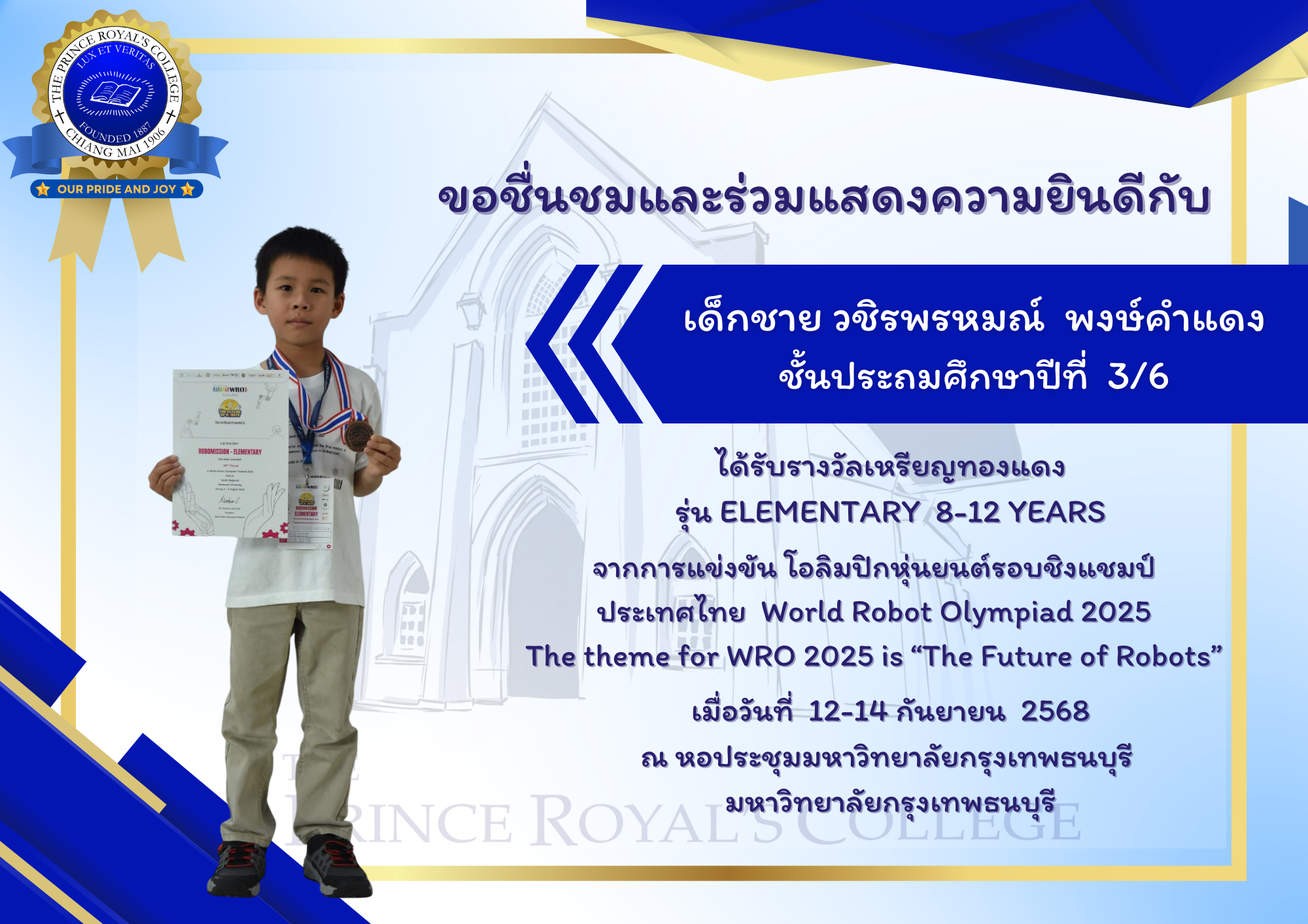 ขอชื่นชมและร่วมแสดงความยินดีกับ เด็กชายวชิรพรหมณ์ พงษ์คำแดง ชั้นประถมศึกษาปีที่ 3/6