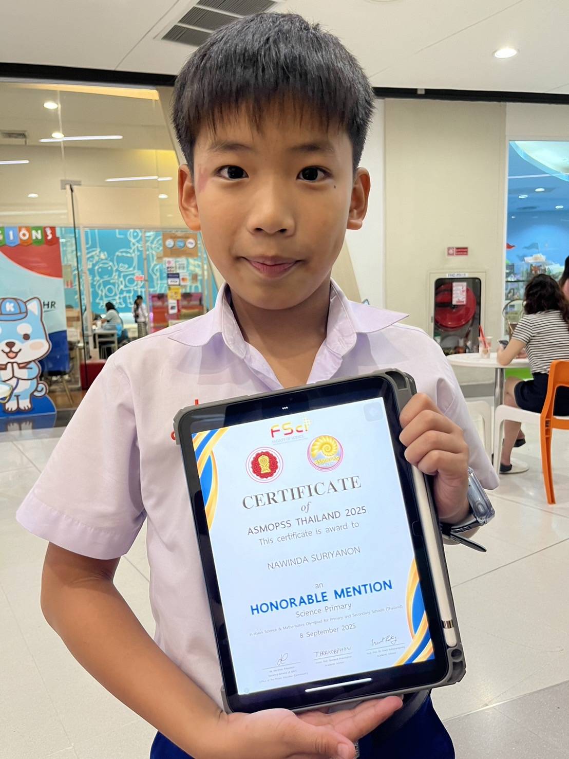 ขอชื่นชมและร่วมแสดงความยินดีกับ เด็กชายนวินดา สุริยานนท์ ชั้นประถมศึกษาปีที่ 3/2