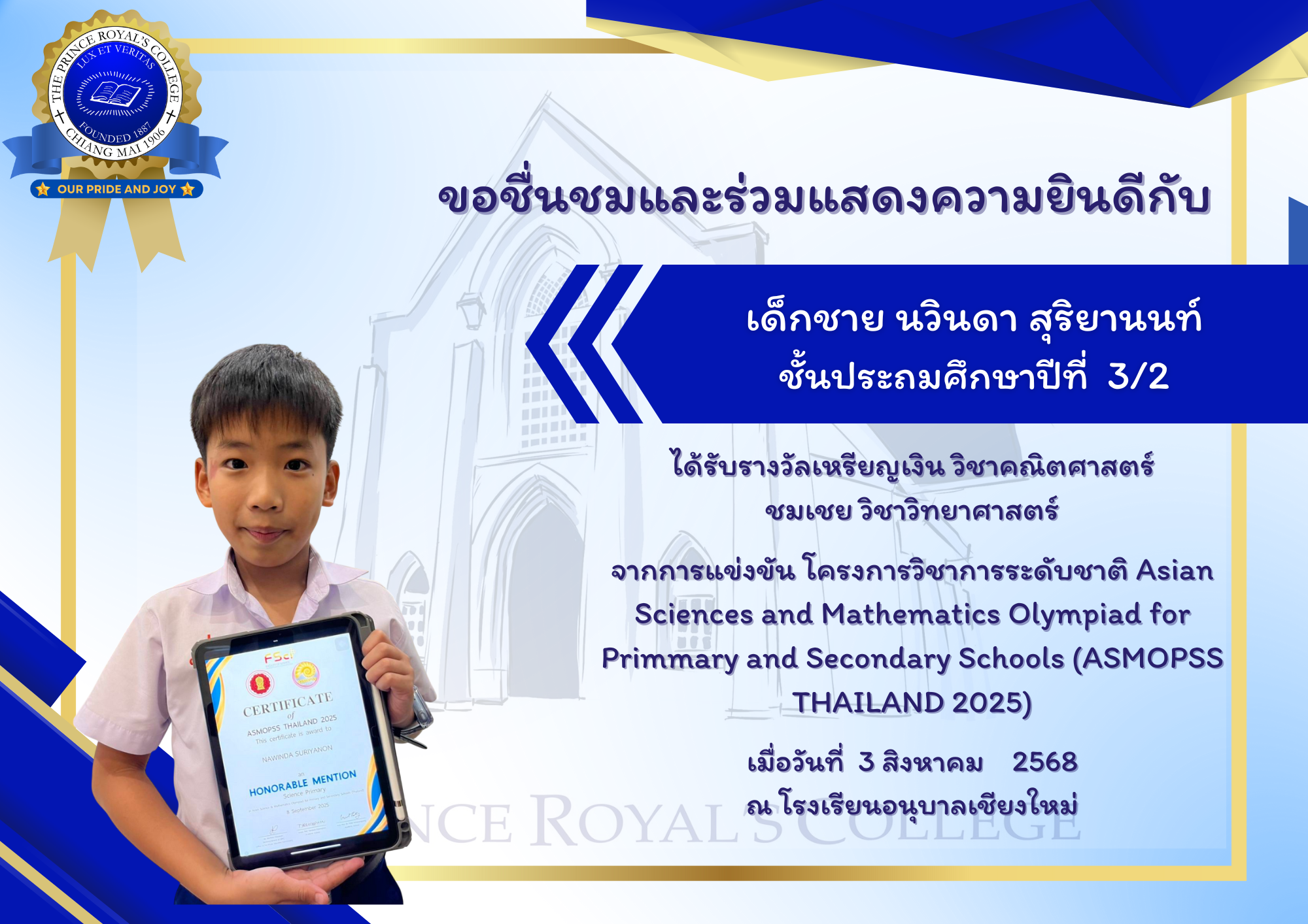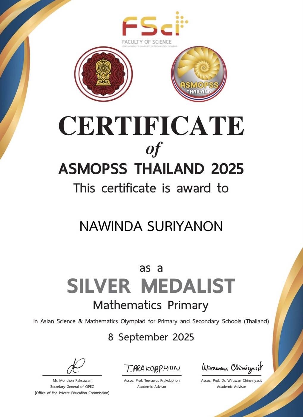 ได้รับรางวัล เหรียญเงิน วิชาคณิตศาสตร์