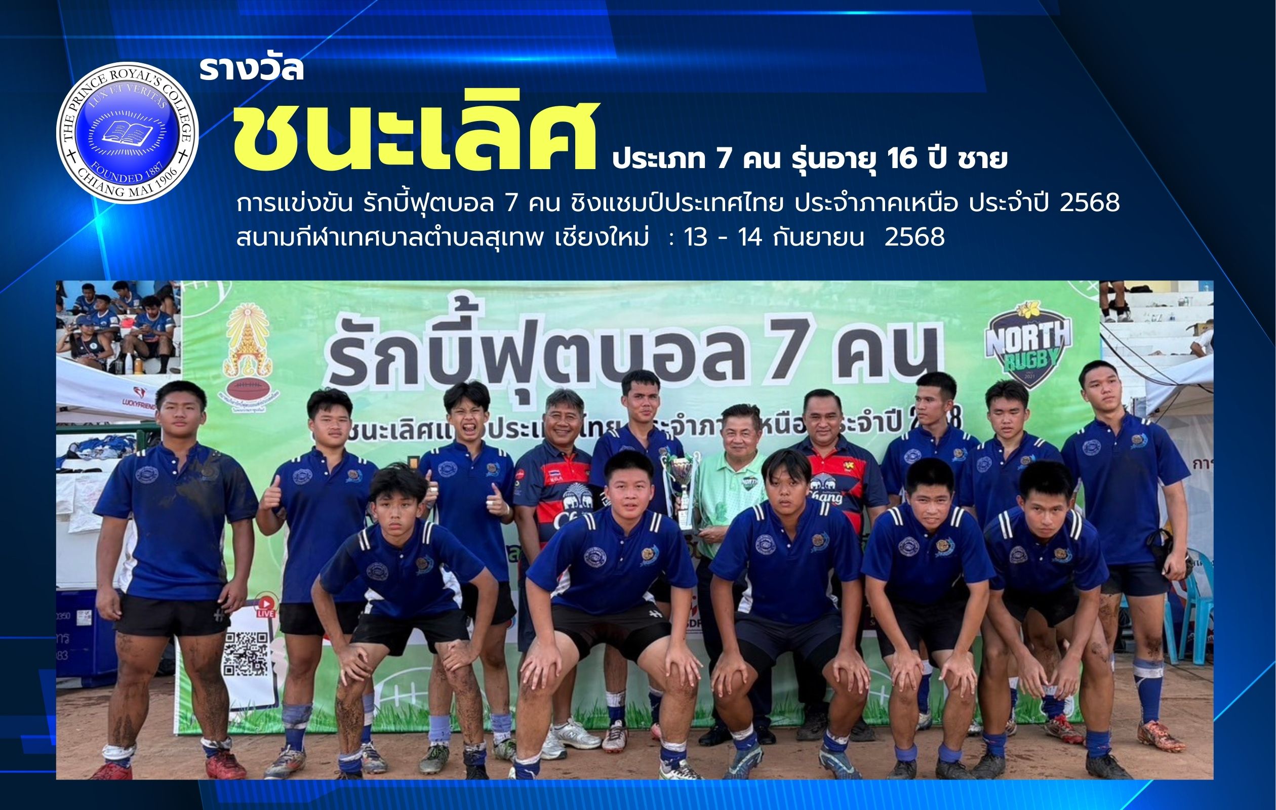 ขอชื่นชมและแสดงความยินดีกับ นักกีฬารักบี้ฟุตบอล PRC ที่ได้รับรางวัลจากการแข่งขัน รักบี้ฟุตบอล 7 คน ชิงแชมป์ประเทศไทย ประจำภาคเหนือ ประจำปี 2568 จัดโดย สมาคมกีฬารักบี้ฟุตบอล แห่งประเทศไทยในพระบรมราชูปถัมภ์ ส่วนภูมิภาค ประจำภาคเหนือ ณ สนามกีฬาเทศบาลตำบลสุเทพ จังหวัดเชียงใหม่ เมื่อวันที่ 13 – 14 กันยายน 2568 (ระดับภาค)