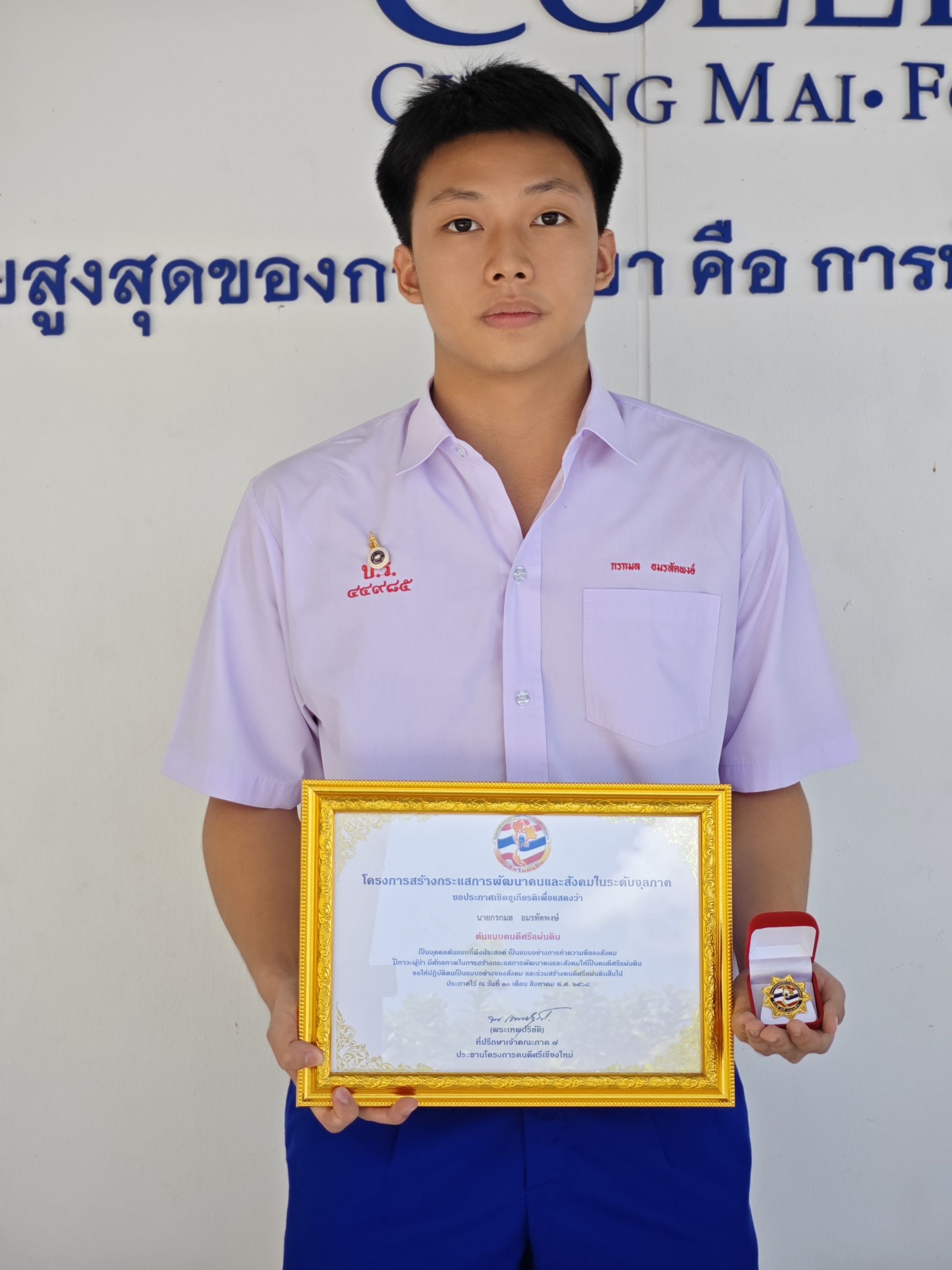 ขอชื่นชมและแสดงความยินดีกับ นายกรกมล อมรทัตพงษ์ ม.6/3 ที่ได้รับเลือกให้เป็นต้นแบบคนดีศรีแผ่นดิน โครงการสร้างกระแสการพัฒนาคนและสังคมในระดับจุลภาค จัดโดย โครงการคนดีศรีเชียงใหม่ ณ มหาวิทยาลัยฟาร์อีสเทอร์น เมื่อวันที่ 30 สิงหาคม 2568 (ระดับจังหวัด)