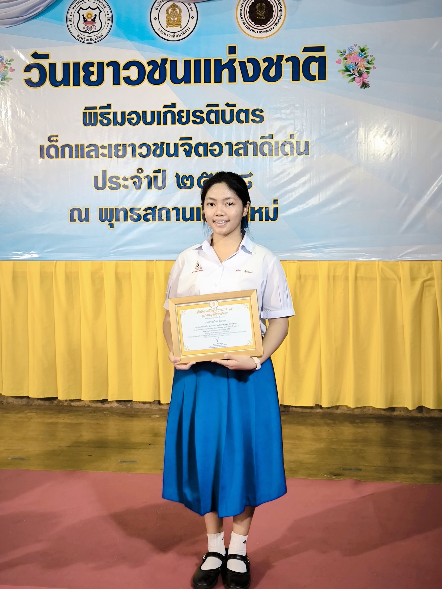 ขอชื่นชมและแสดงความยินดีกับ นางสาวรวิชา ตุ้มวอน ม.4/3 ที่ได้รับเลือกให้รับรางวัลเชิดชูเกียรติเด็กและเยาวชนจิตอาสาดีเด่น ด้านวิชาการ” ภายใต้โครงการ “เด็กและเยาวชนรู้คิด จิตอาสาพัฒนาชาติ” ครั้งที่ 4 ประจำปี 2568 จัดโดย สำนักงานศึกษาธิการภาค 15 กระทรวงศึกษาธิการ เมื่อวันที่ 21 กันยายน 2568 (ระดับจังหวัด)