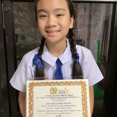 เด็กหญิงปิติลักษณ์ เปรมตั้งธนา รางวัลชมเชย “MERIT AWARD” โครงการทดสอบความเป็นเลิศสมรรถนะวิชาการนานาชาติ ชิงชนะเลิศแห่งประเทศไทย ครั้งที่ 1
