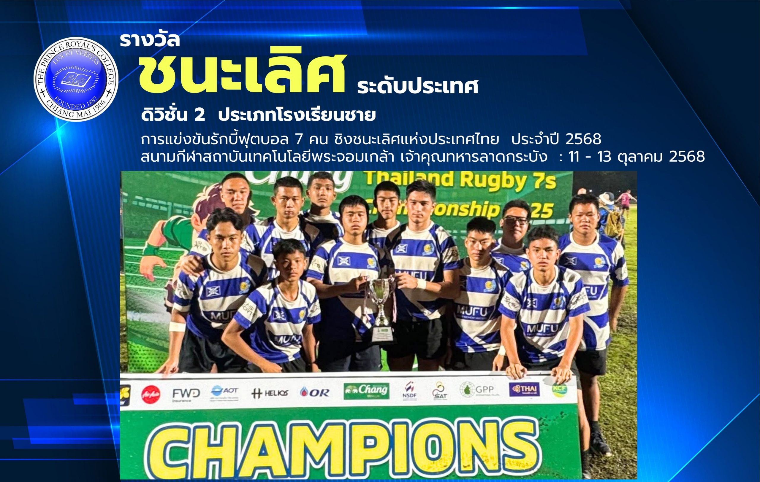 ขอชื่นชมและแสดงความยินดีกับทีมรักบี้ฟุตบอล PRC ที่ได้รับรางวัลชนะเลิศอันดับ 1 ดิวิชั่น 2 ประเภทโรงเรียนชาย จากการแข่งขันรักบี้ฟุตบอล 7 คน ชิงชนะเลิศแห่งประเทศไทย ประจำปี 2568 จัดโดย สมาคมรักบี้ฟุตบอลแห่งประเทศไทยในพระบรมราชูปถัมภ์ ณ สนามกีฬาสถาบันเทคโนโลยีพระจอมเกล้า เจ้าคุณทหารลาดกระบัง กรุงเทพมหานคร เมื่อวันที่ 11–13 ตุลาคม 2568 (ระดับประเทศ)